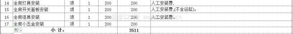 水電工程是整個(gè)房屋裝修中非常重要的一個(gè)部分,對(duì)水電工程的裝修材料和施工工藝都是需要業(yè)主仔細(xì)、嚴(yán)格的對(duì)待。這份2017裝修半包報(bào)價(jià)單中可以看到對(duì)每一個(gè)水管、電線盒強(qiáng)弱電改造都分得比較細(xì),這樣的方式是為了方便業(yè)主能夠清楚、明了的看到水電工程中詳細(xì)的報(bào)價(jià)項(xiàng)目。而這里的其他項(xiàng)目則包括了全房的防潮和燈具、開關(guān)面板安裝,以及對(duì)房間中需要的潔具和小五金等材料的采購(gòu)及安裝。