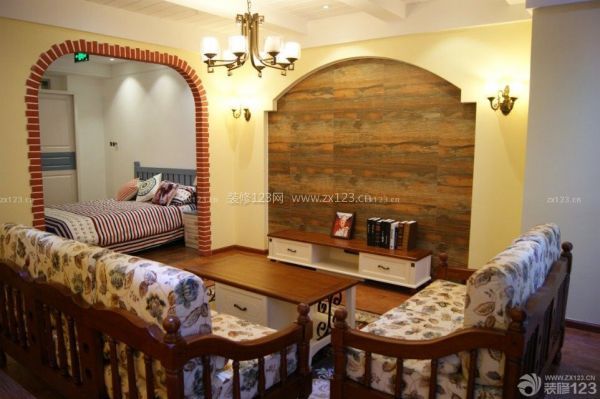 美式鄉(xiāng)村風格:濃烈的大自然韻味,外部效果簡潔誠實,凸顯了高雅的生活品味,適合樓距較低的樓層。此樣板房具有鄉(xiāng)村風格,完美體現(xiàn)在其仿木墻磚及褐色家具上,布藝上也帶有樹葉圖案,配上同款顏色的地毯。非常適合中年年齡層。