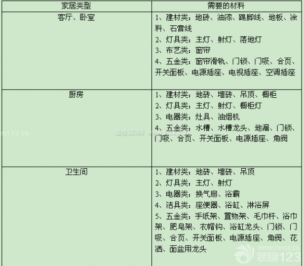 在設(shè)計(jì)師畫(huà)出圖紙后,業(yè)主就要計(jì)算材料費(fèi)了,一般來(lái)說(shuō),裝修必須用的材料包括: