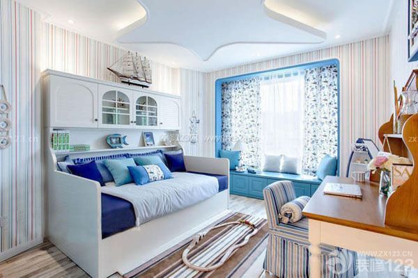 異域風情展現(xiàn)在家居上會給人一種不同的感受,配上地中海本身具有的唯美和干凈,應用在兒童房內則會不由自主的生出一種看似簡單的色彩實則溫馨的環(huán)境,孩子需要這樣的溫馨的感覺,而地中海風格兒童房設計實現(xiàn)了這一目標,為孩子打造了一個精彩的房間,讓孩子每天都生活在輕松的環(huán)境中。