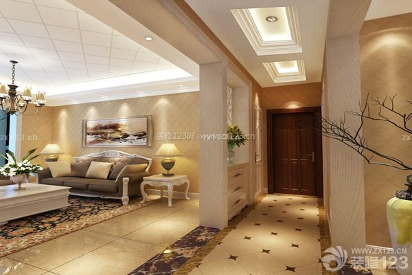 2、天花劃分:可以通過(guò)天花造型的區(qū)別來(lái)界定門廳的位置。
