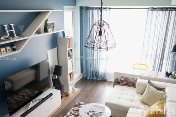 電視背景墻是小戶型收納的重點(diǎn),將整面墻都打造成電視柜的樣式,方便收納書籍,節(jié)約空間。