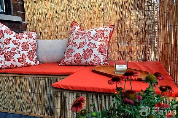 除了植物,陽臺的其余部分就是“舒適的座位”這樣你休息才能真正的高枕無憂。不要認(rèn)為好座位的選擇必須是昂貴的,下面的長椅是利用塑料存儲箱、膠合板和蘆葦柵欄制作的。