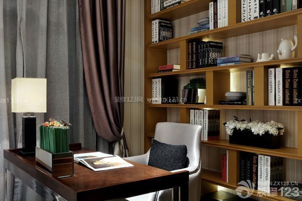 隨著閱讀量的提升,小巧的書(shū)桌、書(shū)柜已經(jīng)不能滿足龐大書(shū)籍的擱置,利用靠墻的空間,安置書(shū)架,書(shū)籍整齊有致,可以讓人充分的體驗(yàn)到讀書(shū)的樂(lè)趣。從屋頂延伸到地板的書(shū)架達(dá)到了空間利用極致的效果,收納功能更是強(qiáng)大。整面墻的書(shū)柜雖然可以收集很多東西,但是有著致命的弱點(diǎn),如果你的書(shū)柜沒(méi)有任何裝飾格子的話,那整面墻看起來(lái)會(huì)很呆板。在書(shū)架的選擇上可以選擇樣式新穎而創(chuàng)意的造型,添加一張?zhí)梢?,讓人倍感舒適。書(shū)房很大,就在一角開(kāi)辟出一整面墻的書(shū)架吧。棕黑色書(shū)架更顯沉穩(wěn)大氣,同時(shí)也具備很強(qiáng)的收納能力。書(shū)架的頂部展示著主人個(gè)性而獨(dú)特的裝飾品,有效緩和了嚴(yán)肅的氣氛,書(shū)架旁的綠植,更是形成一道美麗的風(fēng)景線。