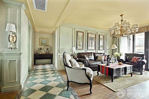 客廳作為待客區(qū)域,一般要求簡(jiǎn)潔明快,同時(shí)裝修較其它空間要更明快光鮮,通常使用大量的石材和木材飾面裝飾;美國人喜歡有歷史感的東西,這不僅反映在軟裝擺件上對(duì)仿古藝術(shù)品的喜愛,同時(shí)也反映在裝修上對(duì)各種仿古墻地磚、石材的偏愛和對(duì)各種仿舊工藝的追求上??傮w而言,美式田園風(fēng)格的客廳是寬敞而富有歷史氣息的。