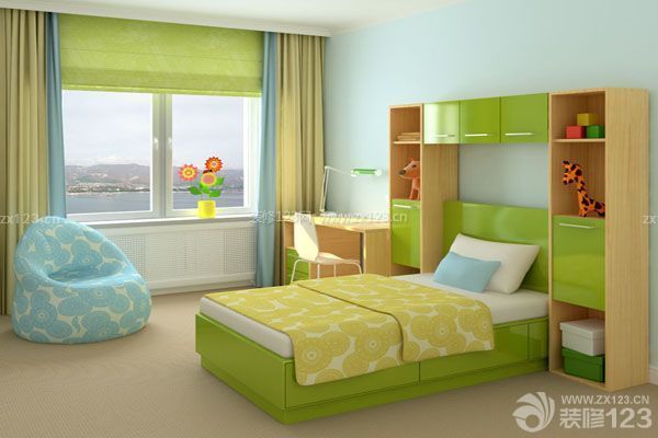 兒童房房間的顏色,可較大膽,床罩、窗簾的選擇、色調(diào)要合理,圖案要滿足兒童的個性,如采用對比強(qiáng)烈、鮮艷的顏色,可充分滿足兒童的好奇心與想象力,使其帶著游戲時(shí)的感受,一直延續(xù)到夢境中,使他們的臥室成為現(xiàn)實(shí)世界與夢境自然而又順理成章的銜接。