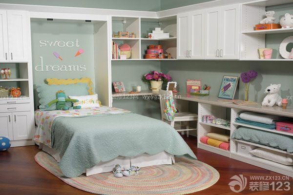 “幼兒期”睡眠完全是在不知不覺中被動接受的,也許在游戲過程中,就會酣然入睡。在必備家具的擺設(shè)上,首先應(yīng)該滿足兒童閱讀、寫字、玩電腦、更衣的功能,其次要滿足兒童天真、活潑的個性。在墻角處或窗兩側(cè)放置木制角柜,把兒童玩具、工藝品、寵物造型及生活照片擺放其中,點(diǎn)綴空間。地面多采取木地板、地毯等可滿足小孩在上面摸爬的需要。光源要亮一點(diǎn),尤其是寫字桌旁。