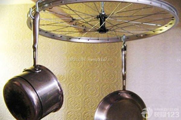 廚房本來就擁擠,再放進去個自行車?千萬別這么想,我們的目的是給廚房增加空間利用率,當(dāng)墻面已經(jīng)被各種櫥柜霸占之后,剩下的空間就在頭頂上,于是,就有了這么個主意。你將需要:車圈、鐵絲、膨脹螺栓