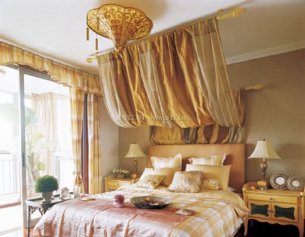 床幔氣質(zhì):雖說是以華麗為主題,卻沒必要到處都是金光燦燦;即便使用了金色,也會是隱忍不發(fā)的暗調(diào)。華貴氣質(zhì)不需要咄咄逼人的張揚(yáng),這里還有個(gè)“矜持”的度需要把握,那應(yīng)該是一種神采飛揚(yáng)、雍容大度的色彩與光澤。