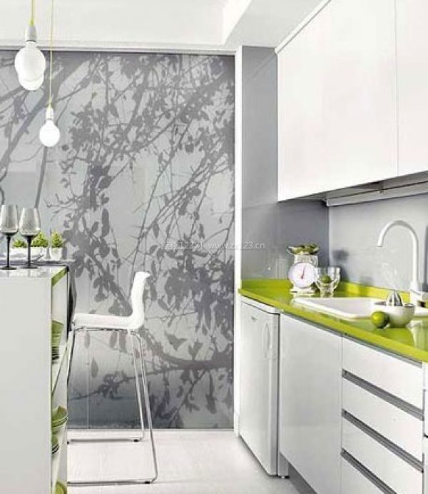 植物造型的隔斷玻璃搭配主題的翠綠色,自然氣息便更加濃郁了。廚房里有好幾個收納柜,可以容納很多料理工具,旁邊內(nèi)嵌式的迷你小冰箱,新鮮的食材都靠它來保存,也給了小戶型更多的視覺空間。 四面一體的純白色模塊將清新風格小戶型的簡美哲學發(fā)揮得淋漓盡致。