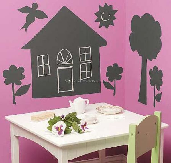 亮麗的墻面,搭配黑色的壁飾也很不錯(cuò)。雖然黑色給人感覺很深沉,但有著太陽、鳥兒、房子、樹和花這些生動(dòng)圖紋,仿佛勾勒出了一幅充滿生氣的春天景象。