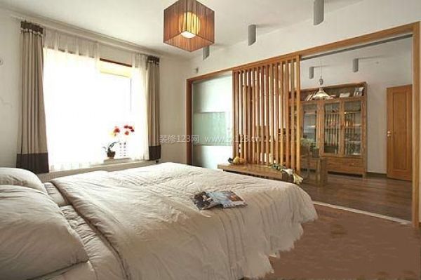 臥室與書房以楠木條屏分隔,斷連自如??臻g就是如此空間,東方的極簡表情。