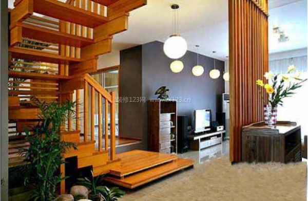 開放式的空間處理,步入玄關(guān)以后,別有洞天的設(shè)計,木質(zhì)閣樓樓梯,使得整體空間平添一份溫馨與自然。