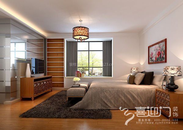 通過(guò)家具色彩、地面材料、陳列甚至燈光的變化來(lái)表達(dá)功能空間的劃分。床頭背景掛上業(yè)主自己繡的牡丹十字繡,把生活中的藝術(shù)品融入到空間設(shè)計(jì)當(dāng)中。在享受生活的同時(shí)增添了幾分愜意呢!