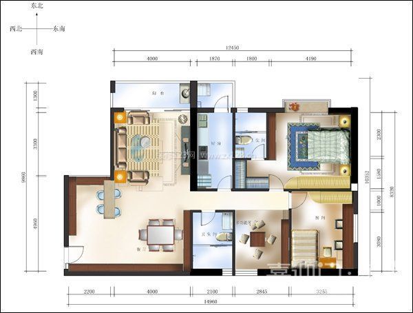 優(yōu)點(diǎn):房型方正,實(shí)用性強(qiáng)。