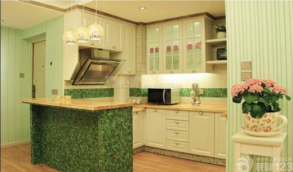 2) 廚房墻面瓷磚宜用亮光面的釉面磚。在沒有設(shè)計師的指導(dǎo)的情況下,可用白色、乳白色。不宜用骨色或者深色類的瓷磚。也不宜用花紋過于暗淡的瓷磚。
