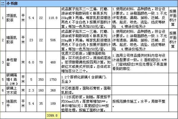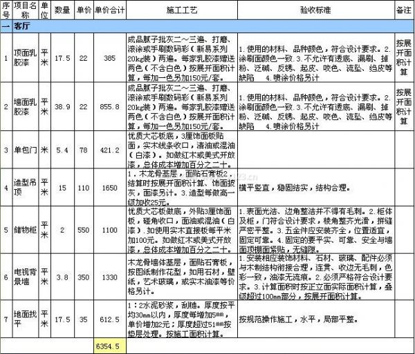 下表為視覺家站近期招標成功的一份詳細的裝修預算表(附有效果圖),房屋結(jié)構(gòu)為一室兩廳一廚一衛(wèi)