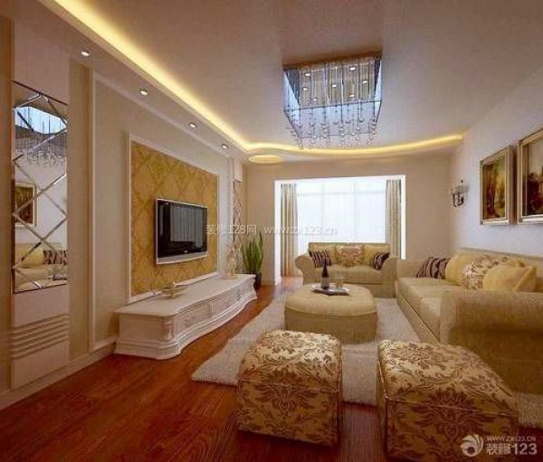 簡歐風(fēng)格裝修,暖色調(diào),獨特的吊頂造型,室內(nèi)家具擺放得體,看起來很溫馨