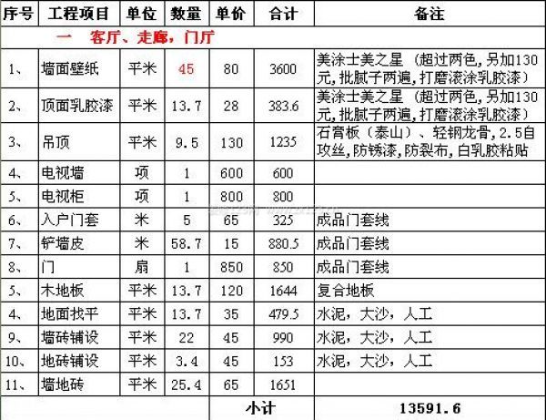 更詳細的區(qū)域報價單請點擊下載>房屋裝修報價單詳