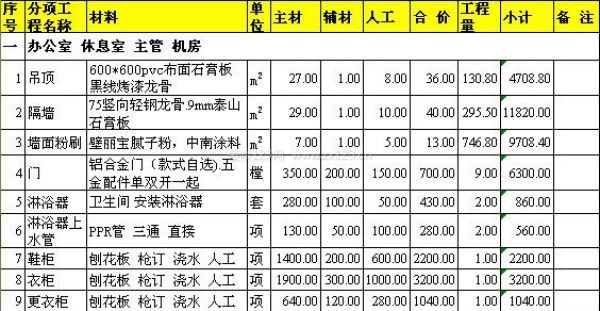 上海廠房裝修預(yù)算清單(一)