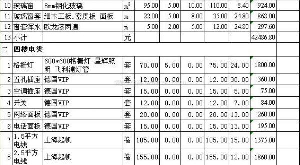上海廠房裝修預(yù)算清單(二)