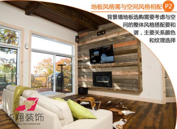背景墻地板選購需要考慮與空間的整體風(fēng)格搭配要和諧。例如,整體裝修風(fēng)格比較古典、復(fù)古,地板選擇時(shí)就選顏色較深、做舊效果比較突出的。如整體風(fēng)格是簡(jiǎn)約清新的,就可選顏色較淺的地板。