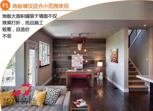 木地板一般只宜小范圍裝飾墻面,不宜大量應(yīng)用。如果大部分或全部墻面都裝上木地板,裝修效果不是讓人驚艷,而是讓人感到逼仄了。且木地板畢竟不是適宜于墻面裝修的常用材料,大量應(yīng)用的話可能會(huì)掉下來,同時(shí)也存在施工較難的問題。