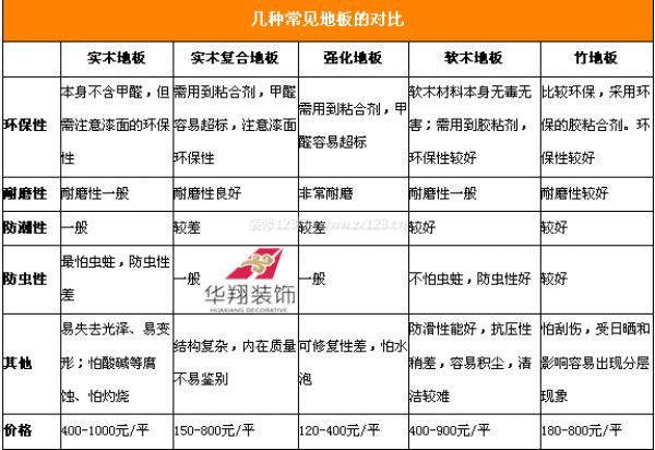 從上表的幾種常見地板的對(duì)比中,可以看出不同種類的地板的性能有所差別:實(shí)木地板較環(huán)保;實(shí)木復(fù)合地板穩(wěn)定性好;強(qiáng)化復(fù)合地板非常耐磨;軟木地板柔軟,靜音效果好;竹地板外觀清新。