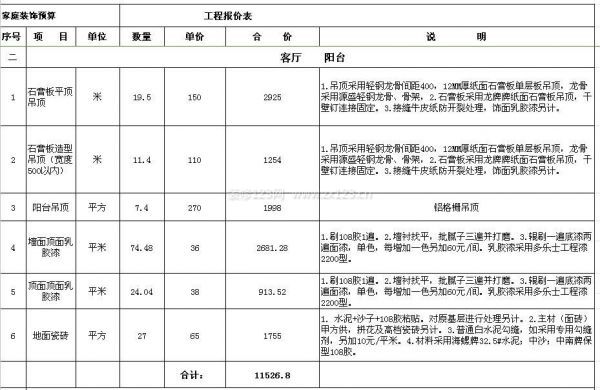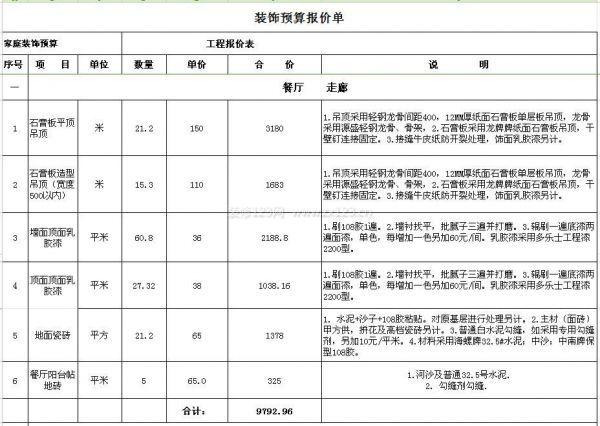 130平米裝修預(yù)算表(一)