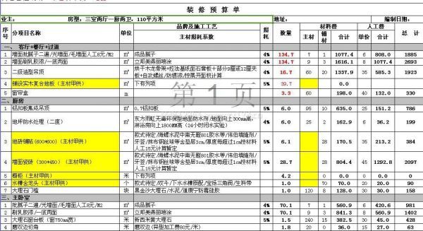 110平米裝修預(yù)算表(一)