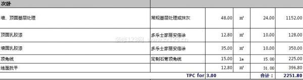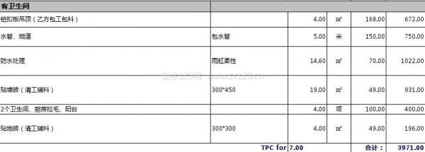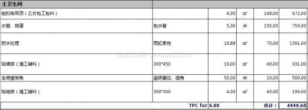 接下來是客衛(wèi),和主衛(wèi)一樣,唯一不同的是防水只需要全做兩面墻,看下一下詳細預(yù)算