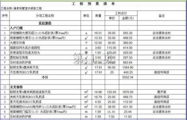 針對于這樣的問題,小編今天特意在一家裝修公司要到了一份別墅裝修預算清單,以供各位別墅裝修業(yè)主參考,了解別墅裝修費用的具體出處,不至于超額裝修。