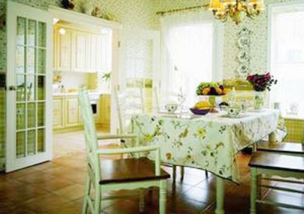 餐廳的碎花桌布,讓人感覺(jué)很休閑舒適。這樣的一套淺色餐桌椅顯得有些單調(diào)了,擺放一束艷麗的小花,是不是就顯得更加精神了。