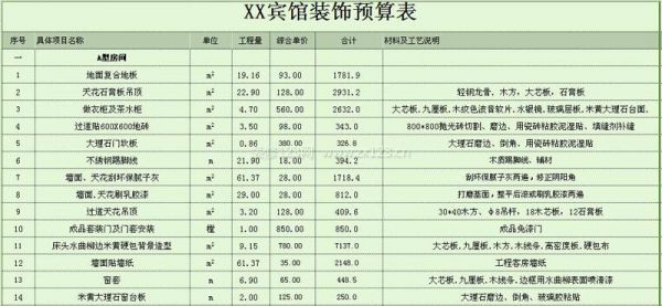 既然裝修前是一定要做裝修預(yù)算表的,那么賓館裝修費(fèi)用的預(yù)算表又該如何做呢?今天小編就來對賓館裝修費(fèi)用解密,給大家一份詳細(xì)的賓館裝飾預(yù)算表,供大家參考參考。