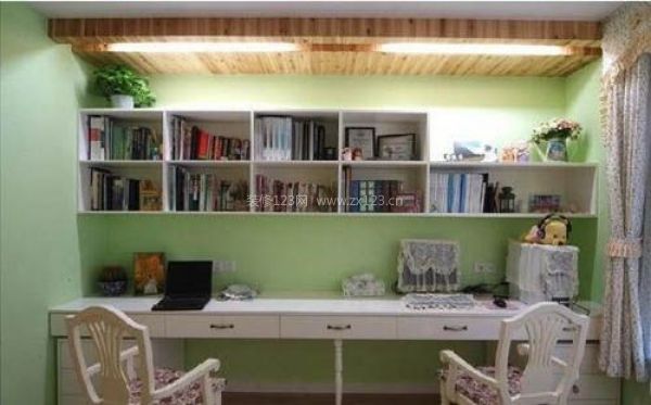 臥室旁邊就是小書房,原本想弄個兒童房,但是想了很久,這邊墻還是弄了個小書架和擱板桌,當(dāng)下很重要的這個區(qū)域還是不能少,以后有了孩子再看怎么辦吧。有木有發(fā)現(xiàn)?這個房間的墻面刷的是淡綠色噢,很平和安靜的感覺,以后兒童房也可以用的這個色。忍不住再贊一下很棒的來威漆!