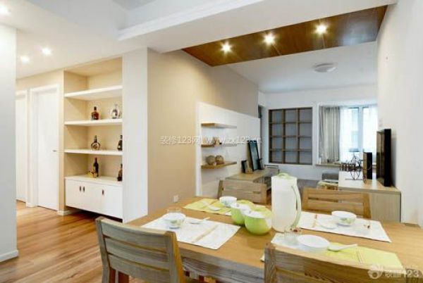 最好能單獨辟出一間做餐廳,但有些住宅并沒有獨立的餐廳,有的是與客廳連在一起,有的則是與廚房連在一起,在這種情況下,可以通過一些裝飾手段來人為地劃分出一個相對獨立的就餐區(qū)。如通過吊頂,使就餐區(qū)的高度與客廳或廚房不同;通過地面鋪設不同色彩、不同質地、不同高度的裝飾材料,在視覺上把就餐區(qū)與客廳或廚房區(qū)分開來;通過不同色彩、不同類型的燈光,來界定就餐區(qū)的范圍;通過屏、隔斷,在空間上分割出就餐區(qū)等等。
