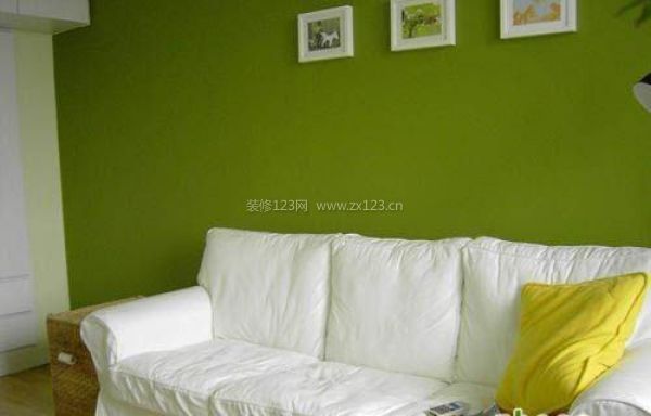 綠配白,很清晰的搭配,白白的布藝沙發(fā)給人干凈的感覺。由于墻壁均是綠色,所以裝飾品很少,采用三幅相框即可。
