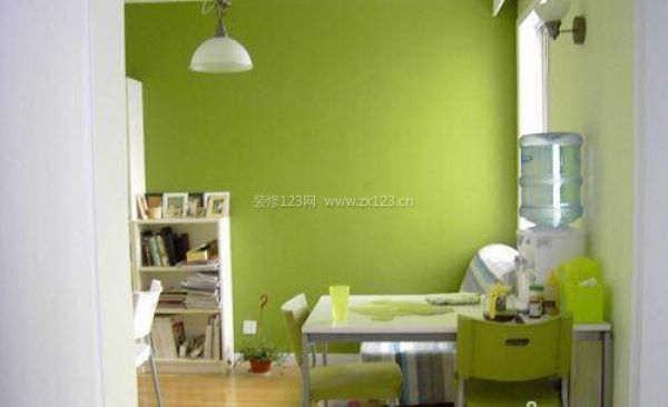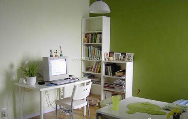 進(jìn)門后就是我家的小餐廳和書房的空間了,這樣的設(shè)計(jì)很少見,比較房間的空間有限,合理利用空間是小戶型裝修常用手法之一。綠色的墻壁和白色家具很清涼的感覺。