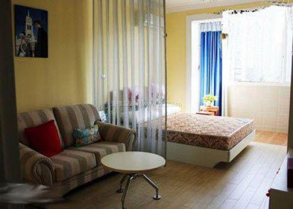 因為面積的原因,客廳和臥室是連在一起的,把墻給推了,用窗簾做隔斷,這樣看上去空間感就比較大,不會讓人覺得面積小,看上去也大氣。臥室里面也有一個小小的生活陽臺,早上起床就在陽臺上站一站,伸個懶腰,大大哈欠,多么怡然啊!