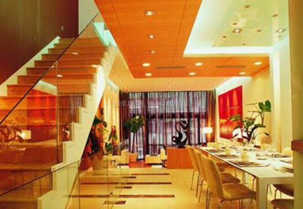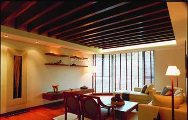 這款吊頂也屬于異性形吊頂,雖然它表面看是大平面為主,但仔細(xì)看,這個平面是由一組木制橫梁組成的。這種吊頂富有樸素大方并具有異域風(fēng)情的特色,是小資一族所經(jīng)常青睞的。該類吊頂一般用于客廳或餐廳等空間。