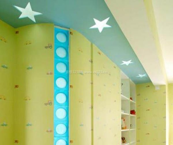 “天上的星星亮晶晶”看這款充滿兒童樂趣的吊頂。這樣的吊頂是否讓你想起自己的童年歲月呢?富有天空聯(lián)想的吊頂與卡通情趣的壁紙一起,給空間帶來了童話般的夢幻格調(diào)。