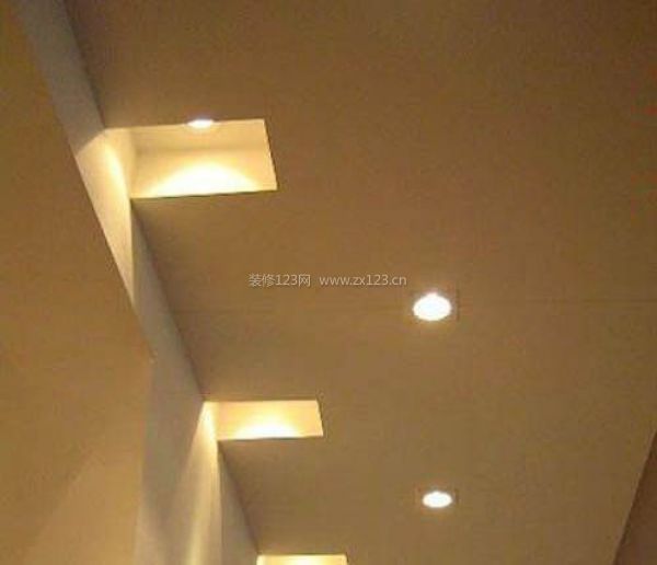 這款吊頂也屬于異形吊頂,一排發(fā)光的燈槽,把天花板與墻面有機地結(jié)合起來,燈槽投射到墻面上迷離的燈光,給原本單調(diào)的平面帶來了韻致。這種設(shè)計常見于簡約的現(xiàn)代家居中。