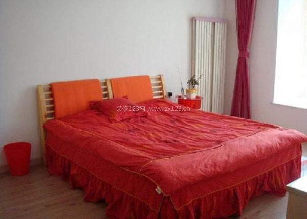 次臥紅色的床品,讓整個空間沉靜在溫暖的生活享受中。