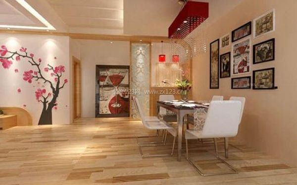 如果你是一個(gè)追求時(shí)尚的婦女和女孩,餐廳背景墻可以選擇粉紅色作為中心色,燈罩粉紅色,座墊和窗簾可用粉紅印花布,地板配上淡茶色,墻壁乳白色,這樣會(huì)給人一種靚麗青春之感。