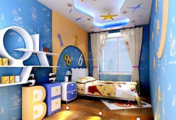 整個裝修風(fēng)格呈現(xiàn)出一種童趣感,藍(lán)色的壁紙上卡通圖案的點綴使這種感覺更加的凸顯,總之這款壁紙是最具有兒童趣味的壁紙,特別適合兒童房的壁紙。