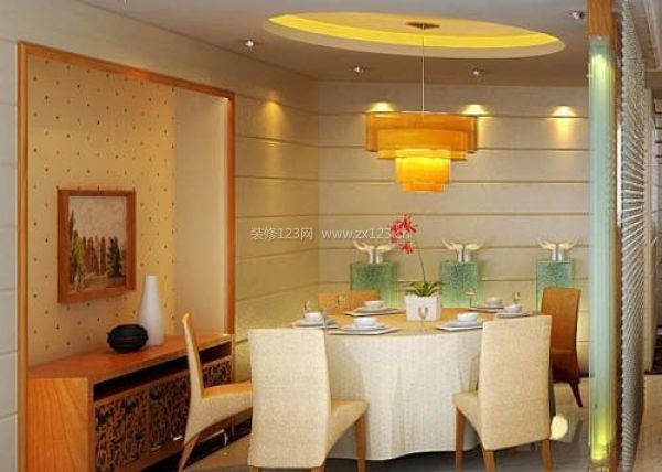 餐廳的照明應(yīng)將人們的注意力集中到餐桌上。局部照明采用向下直接照射配光的燈具,一般以碗形反射燈具與吊燈為宜,安裝在桌子上方800毫米左右處,如燈具能升降更好。燈具的藝術(shù)性可根據(jù)個(gè)人愛好而定。若餐廳是吊平頂?shù)模部刹捎们度胧綗艟?。圓形吊燈與圓形餐桌相對(duì),淡雅的燈罩與淡雅的桌布相對(duì),一切都想得對(duì)稱、自然、舒適。