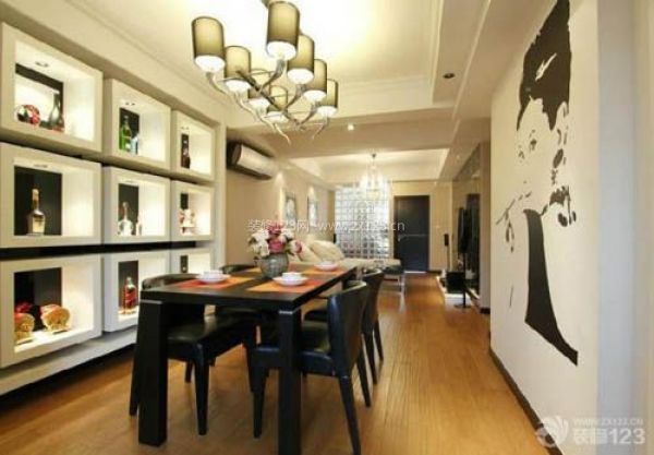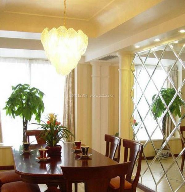 吊燈、壁燈、吸頂燈、筒燈,這些都可作為餐廳燈具的選擇。一般房間的層高若較低,宜選擇筒燈或吸頂燈作主光源。如果餐廳空間狹小,餐桌又靠墻,那就不必選擇吊燈作主光源了,可以借助壁燈與筒燈光線的巧妙配搭來獲得照明的需要,處理得當(dāng)?shù)脑?,一點(diǎn)也不比吊燈的美化效果弱。