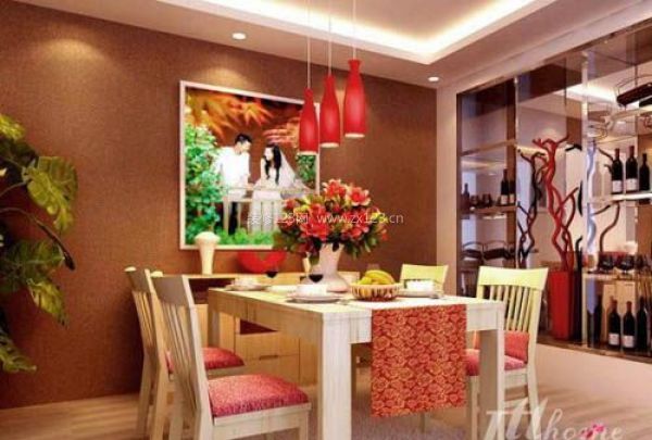 為了要顯示餐桌獨特的風格,可選擇不同的桌布作為表達手段。簡樸的麻質(zhì)桌布表現(xiàn)出自然傳統(tǒng)的風味,鮮艷明亮的桌布則能感到歡快活潑的氣息。另外,餐桌上方配以合適的燈具,既能讓人領略美食的“色”之美,又能營造出一種迷人的氛圍。