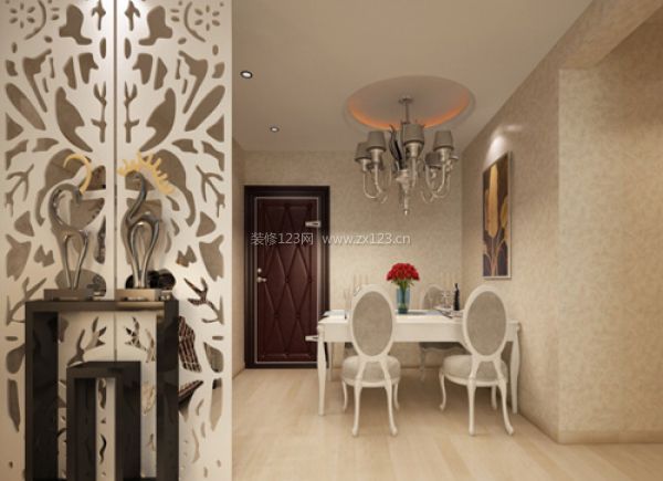 餐廳亮點:餐廳采用玄關做隔斷,使餐廳和客廳緩沖空間,視線不要對室內一覽無余,保證室內生活的隱秘性,使室內之氣不致外泄,整體舒適優(yōu)雅的就餐環(huán)境。