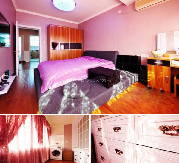 淺紫和粉紅的搭配將嫵媚舒適在臥室得到體現(xiàn),在臥室中醞釀出溫馨浪漫的愛情色彩。